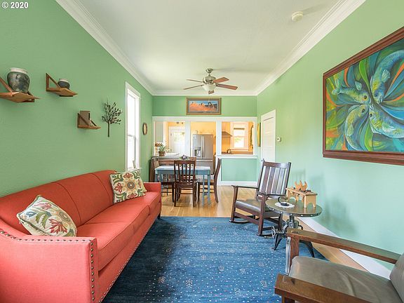 True craftsmanship abounds here! After being greeted by the adorable covered porch w/ tongue & groove ceiling, be awed by grand ceiling height & open floor plan. Flow right through the generous kitchen w/ newer appliances, ample counter space & fabulous natural light into oasis like backyard. 2 nice sized beds & an updated bath complete the main floor. The real surprise is the tastefully finished basement w/ exterior entrance making for over 800 sqft of creative space for work, storage & play! [Home Energy Score = 10. HES Report at https://rpt.greenbuildingregistry.com/hes/OR10183825]