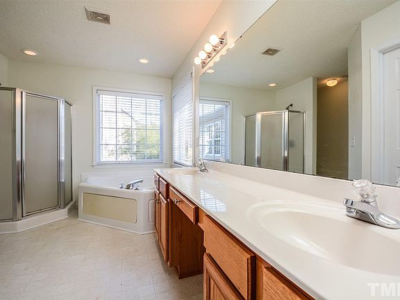 Built in 2004, this Raleigh two-story offers hardwood flooring, a fireplace, and a two-car garage. Upgraded feature include new carpet in select rooms. This home is part of the Highland Trails HOA.