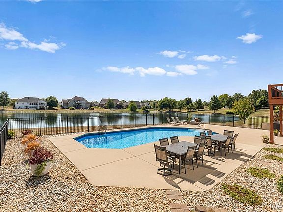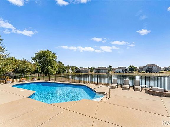 This is your opportunity to enjoy the best of lakeside living with a private inground saltwater pool in the desirable Braeswood Estates. Perfectly situated on a private lake lot in the O'Fallon School District (K-12) this home offers over 5,500 finished sqft of comfort and luxury for your family. The backyard is a private paradise with an incredible saltwater pool, large patio, and peaceful lake views. The home's full wall of windows floods the main living room with natural light. Inside, the open floor plan and hardwood floors create a bright and airy feel. The heart of the home is the inviting kitchen features a spacious island with bar seating, a breakfast area, and a cozy hearth room with a fireplace. The split-bdrm layout provides ultimate privacy for the primary master suite. 2 guest bdrms with a Jack-and-Jill bath, a half bath, separate, laundry room, dining room, formal living room and the massive 3 car garage complete the main level. The 4th bdrm (above the 3 car garage) is massive and can also serve as the perfect playroom or office. The finished walkout basement expands your living space with 9ft ceilings, a large rec room, wet bar, wine closet and a 5th bdrm with a pass-through full bath. A convenient half bath and oversized laundry room are ideal for pool guests. The basement also features 2 large unfinished areas for all of your storage needs! With a new roof installed in 2025, this home not only beautiful but also a smart investment for you and your family.