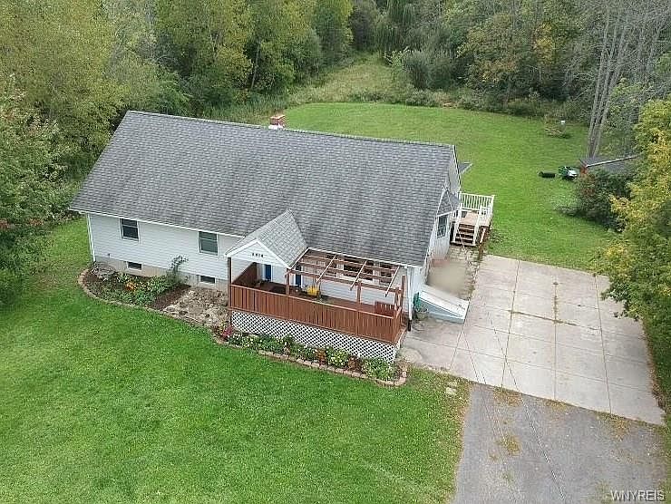 COUNTRY LIVING AT ITS BEST, SITUATED ON 1.3 ACRES, JUST MINUTES TO THE 990. Spacious 5 Bedroom move in ready 2 story home. Convenient First Floor Master plus 2 other BR/den spaces, 1.5 baths, Laundry area/mudroom, L/R & Spacious 4 Season Enclosed Porch/Family Room at the rear of the house(not included in square footage),overlooks the back yard and wooded area. Possible space for in-home business with private entrance. Large Eat-In Kitchen, with ample storage. New Gas stainless steel stove. Second Floor has two bedrooms, entertainment/reading space and full bath w/shower. Walk out basement has lots of possibilities. Roof replaced 2011,enclosed porch roof 2016.Water Heater 2015, Boiler Furnace 2017. Two peach trees and an apple tree for making fresh pies. Various berry plants for snacking.