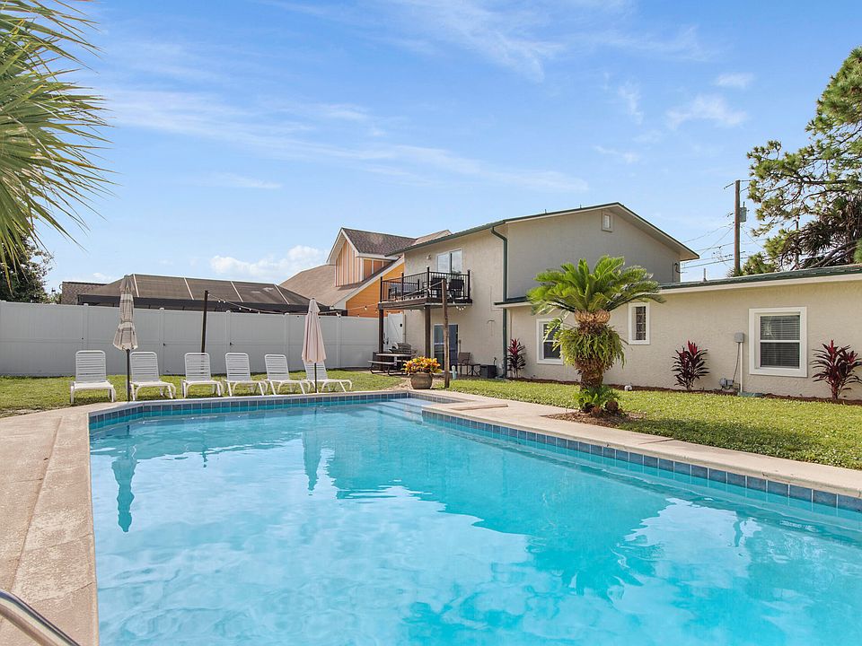 Outside, the property boasts a well-manicured yard situated on a double lot that offers a serene escape for outdoor activities or simply unwinding under the Florida sun.or playing in the pool in any season as its even heated for the chilly months. The home's exterior is equally impressive, with charming architectural details that add to its curb appeal. The fully furnished cottage sleeps up to 12 people and has plenty of parking in the garage and driveway.