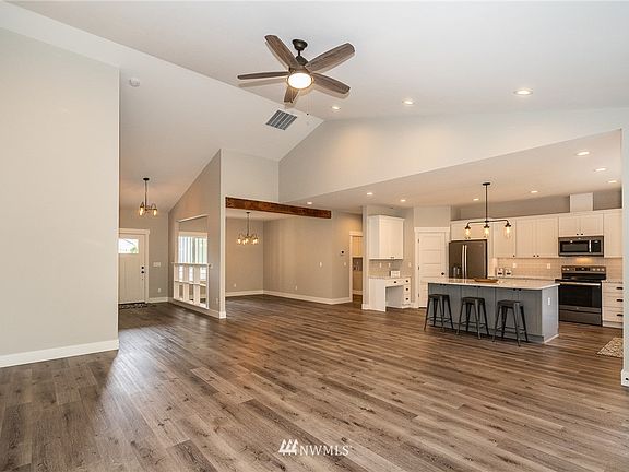 New construction! Quality & attention to detail is evident throughout this custom 3 bedroom, 2 bath home. Top of the line appliances, solid counter-tops, walk-in pantry, and cabinets galore! High-quality waterproof laminate flooring throughout the main living area. Split floor plan, large bonus room, heat pump/AC, vaulted ceilings, covered patio, & plenty of room for your RV. All this on 5 secluded acres. The private well produces 100 GPM and shop features a "Harley door" for your bike or mower.