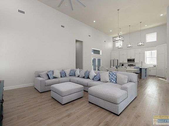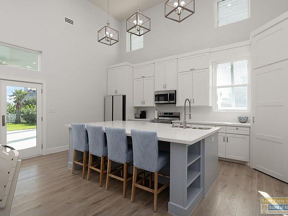 Discover modern luxury in this stunning 3-bedroom, 3.5-bath custom home located in the exclusive Shores subdivision of South Padre Island. Built in 2023, this contemporary residence boasts 2,005 sq ft of thoughtfully designed living space, showcasing high-end finishes, expansive windows for natural light, and seamless indoor-outdoor flow. Enjoy open-concept living with a gourmet kitchen featuring quartz countertops, custom cabinetry, and stainless steel appliances. Each bedroom offers an en-suite bath for ultimate comfort and privacy. The spacious covered patio and large backyard provide the perfect setting for outdoor entertaining, grilling, or relaxing in the coastal breeze. Situated on a 7,144 sq ft lot just moments from the bay and the beach, this home offers the ideal blend of style, comfort, and location. Whether you're seeking a full-time residence, vacation getaway, or investment opportunity—this move-in-ready gem checks every box.