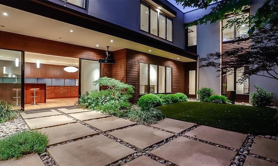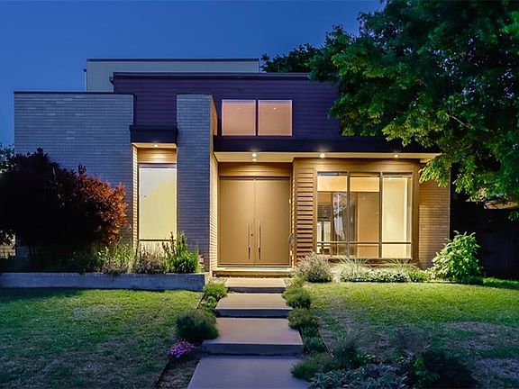 Welcome to this clean-lined contemporary home with an open concept floorplan built by Tom Greico! 4 BR, 3 BA, 1 half bath, 3 living, fully equipped media room, 2 car garage plus carport for additional covered parking along with electric sliding gate. Gourmet kitchen features Viking cooktop, Thermador ovens, custom cabinets, stainless steel appliances complete with wine fridge. Sliding doors open onto great space for entertaining and landscaped backyard with eco-friendly artificial turf. All BR have walk-in closets and entire home equipped with surround sound wiring. A spacious third living area with built-ins and bar. Minutes from Lovefield airport, medical district, private schools, and nearby shopping!