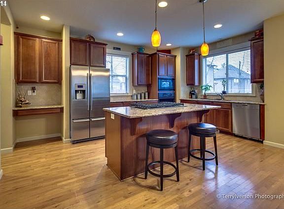 Beautiful Move In Ready. This shows like a new home. Awesome kitchen with Hardwoods floors, Granite counters, Stainless dishwasher and Cook island. Kitchen opens to eating area and family-room with fireplace. 4 bedrooms upstairs and a large loft. Spacious master bedroom with vaulted ceiling and ceiling fan. Master suite has a soaking tub and separate shower.