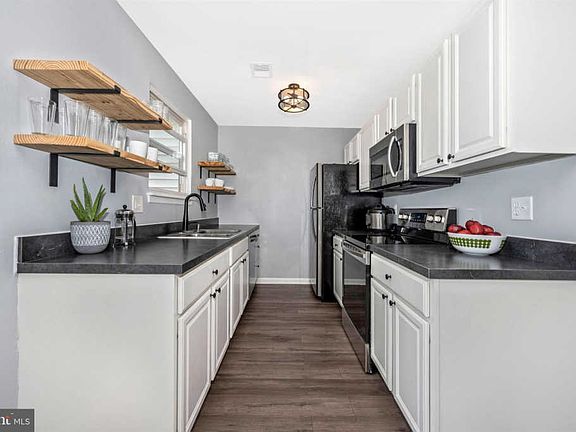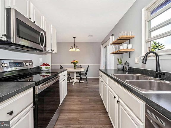 Adorably updated town home ready for move-in! Brand new flooring throughout, fresh paint, open shelving in the kitchen with new counter tops, newer stainless steel kitchen appliances, refreshed bathrooms with new toilets... the list goes on! Outdoor living space on deck and lower patio, with a small garden that conveys and fenced in yard. Main level offers living space, eat in kitchen with lots of light, half bath and space for either dining room or office/play space. Basement is larger than it appears with plenty of storage and living space and houses the laundry. Top level provides primary bedroom with plenty of closet space, full bath and two more bedrooms. Two parking spaces convey with the HOA and just minutes to downtown Frederick.