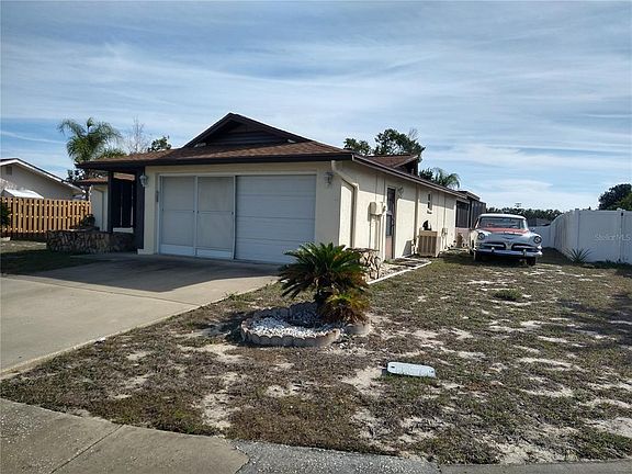 INVESTOR SPECIAL! This 2124 total sqft 2/2/2 pool home is nestled on a peaceful 0.23-acre lot on a cul-de-sac in a neighborhood of fine homes. Roof replaced 2022, Impact windows installed 2018. NO deed restrictions, NO HOA, NO CDD, NO flood zone. This home features an open floor plan, with a living room/kitchen/dinette/family room combination. Split bedrooms with a large walk-in closet in the master bedroom. Sliders from family room and master bedroom open to the large, covered lanai and expansive pool area. Large backyard is mostly fenced and can easily become pet friendly. Close to many amenities including, medical services, hospitals, shopping and more. 40 minutes to Tampa International Airport, 2 hrs. to Orlando.