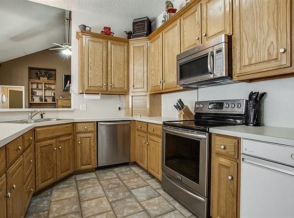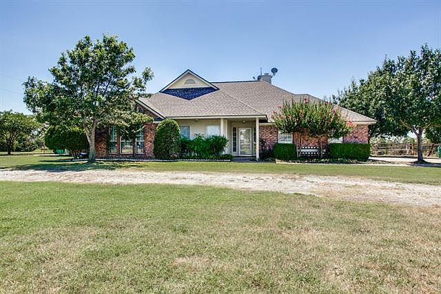 Multigenerational living! Wonderful country property with 4-stall barn, workshop on 2 acres. Fabulous private wing with separate entrance includes huge family room with wood floors, kitchenette with granite, master suite and safe room closet. This 1-story, 5 bed, 3 bath home features open floor plan, living room with fireplace, game room, kitchen with SS, 2nd master split from other 3 bedrooms. Bring your horses and enjoy peaceful country living!