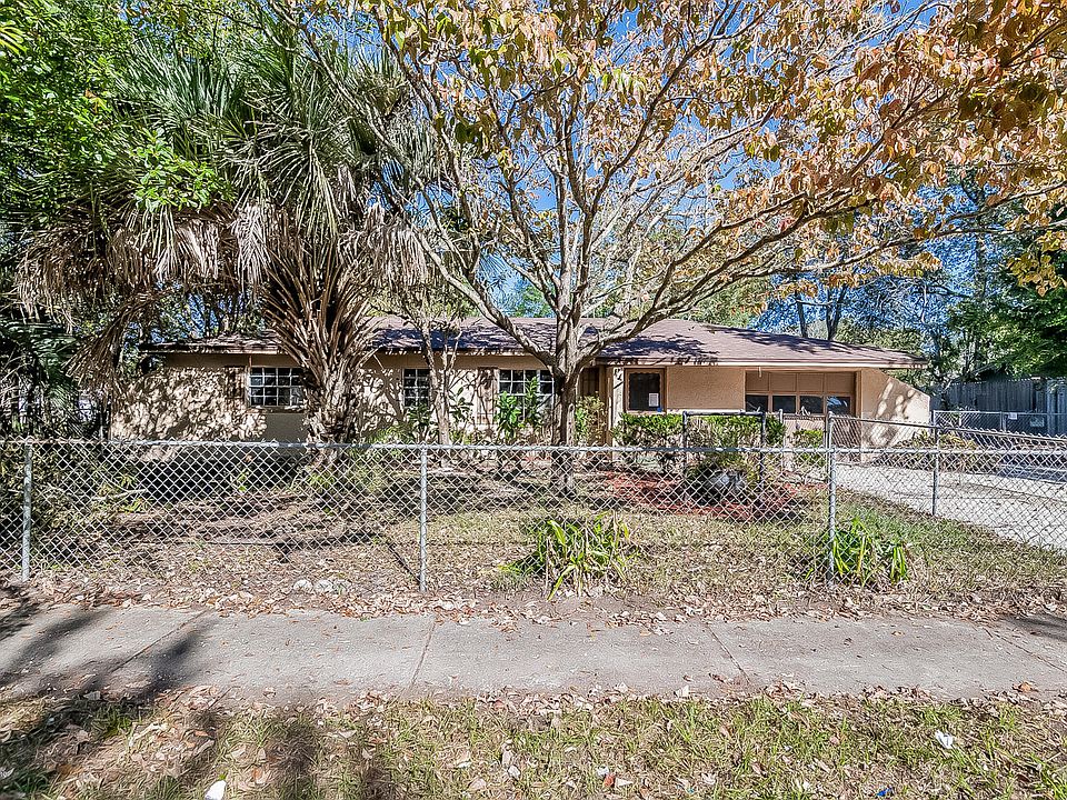 This Jacksonville one-story offers ceiling fans, a screen-enclosed patio, a walk-in closet, and a one-car garage.