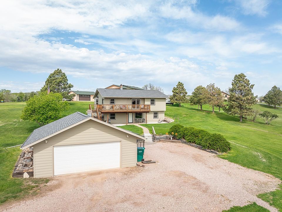 Listed by Pete Jensen, KWBH, 605-484-6713. Loved by the same family for over 35 years, this raised ranch style home has been meticulously maintained and thoughtfully updated! *Situated on a nearly 1 acre lot, this home offers 3 bedrooms, bonus room, 2 remodeled bathrooms and 2,270sqft *Upper level has newer flooring throughout, accented by newer windows and beautiful natural light *A large living room provides great space to relax, and enjoy views through the bay window overlooking the neighborhood *Open concept kitchen has ample cabinet space, quartz countertops, white appliances, unique breakfast bar seating and a convenient walk-in pantry for plenty of storage *2 bedrooms and 1 updated bathroom on the main level *Walkout ground level has newer flooring, an oversized family room conveniently split into two separate areas to use as you wish *1 bedroom, bonus room and a beautifully renovated bathroom complete this level *Outside has an oversized detached 2-car garage with rafter storage and rear workshop space *Nearby gravel pad gives added space for boat or RV parking, plus ample space to add a shop. Recent updates include: sump pump and interior drain installed in 2019, fireplace cleaned in 2022, french drain along the garage exterior, new roof in 2024, HVAC recently serviced, newer laminate flooring, kitchen and bath updates, updated fixtures, recent siding and windows- the list goes on! Located in a quiet neighborhood outside city limits and 15min from Monument Health.