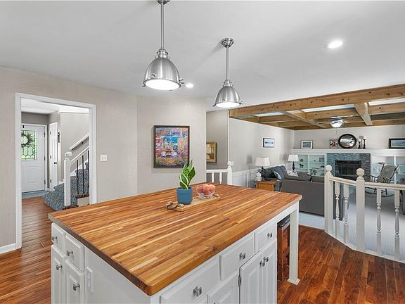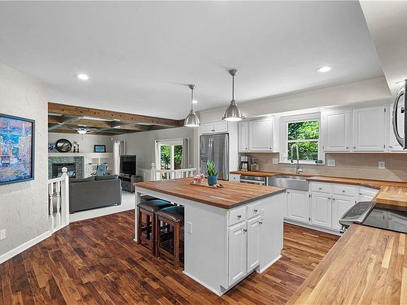 Let’s get straight to the point – you have to come see the finished basement! It is absolutely phenomenal. In fact, the outstanding craftsmanship was awarded Silver for Best Basement Remodels of 2021! And there is so much more to appreciate about this wonderful home. The main level offers comfort and convenience having multiple living spaces, formal dining, half bath, laundry room, and a charming kitchen complemented by the butcher block island and the stainless-steel farmhouse sink. Upstairs, you have the primary suite, three additional bedrooms, and a nicely updated bathroom. Outside, check out the multi-level hardscaped area that was built to last and provides plenty of space for entertaining your guests. Added bonus: new carpet throughout! Conveniently located near shops, parks, restaurants, and Lenexa City Center. Hurry in to see this one!