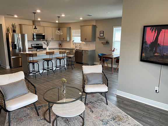 - PREMIUM LOT: NO REAR NEIGHBORS. Instead enjoy your POND VIEW from the living room, kitchen/dining, master bedroom and screened-in back porch. Also, just steps away from the large resort-style swimming pool, dog park, playground, and other amenities.