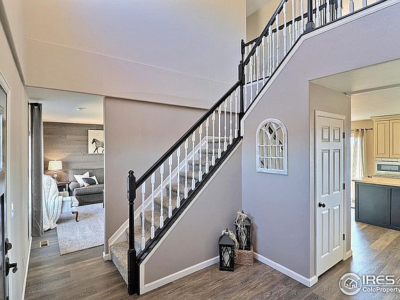 Open space and blue skies surround you in this lovely 2-story updated charmer tucked away on 4 acres in Nunn. Enjoy the calm and quiet of country living, with easy access to highways and the amenities of town. This bright, spacious 3700 sq ft home offers 5 beds and 3 baths, with room to grow. The open living/dining layout is an inviting space to entertain. The updated kitchen combines beauty and function with custom Tharp cabinets, granite countertops, SS appliances and an 8 ft island with butcher block countertop. A convenient main floor laundry room includes washer and dryer. Upstairs, 4 bedrooms and 2 baths provide room to accommodate family and guests. The large primary is a relaxing space with amazing views and a well laid-out 5-piece ensuite with walk-in closet, custom vanity, corner shower and soaker tub. The other 3 generously sized bedrooms share a full hall bathroom with double sink vanity to handle busy morning routines. The updated lower-level bedroom was previously a formal dining room and now doubles as a playroom and guest room including a convenient Murphy bed that can stay with the house. The 1200 sq ft unfinished basement with 9 ft ceilings has so much potential for future owners to expand their living space. Step out the sliding patio doors onto the Trex deck where the newly laid sod, kids play set, raised garden beds and fully fenced yard offer a tranquil backyard setting for grownups, kids and pets. Just a few steps away is a smart 19x10 converted shed-turned-office with heat and AC that makes a fantastic work from home setup. There is a fully insulated, heated 40x60 shop with 1-14'x12' and 2- 10'x10' overhead doors to park and store all your equipment and vehicles. Concrete floors, 220V amp and a mezzanine loft round out this amazing shop. A 124-ft riding pen and 16x8 loafing shed invite you to bring your horses! Windows, exterior paint, exterior doors, roof and central AC - all new in last 5 years. This amazing property is a must-see!