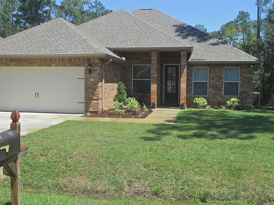 Large open floor plan with split bedroom plan and large laundry room. Kitchen has granite, stainless and an island. Laminated flooring in living area, carpet in bedrooms.