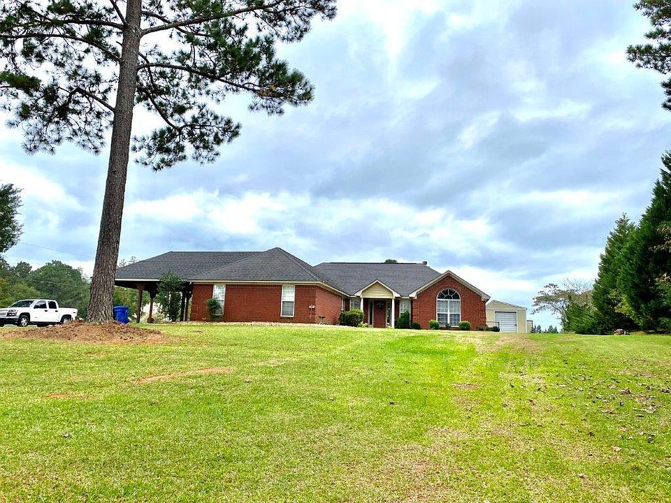 All brick, one story very well maintained home on a corner lot with over an acre. 4 bedrooms. 2.5 bath. Park under 2 car carport and enter into a mudroom area. Enter from front door and enter into gorgeous living room w/vault ceiling. Barn door entrance into den with built-in desk area. Formal dining. Kitchen w/stainless appliances, bar seating and eat in area. Split bedrooms. Inground salt water pool with unfinished pool house. Separate deck. Patio w/pergola. Fenced yard extends in back & left