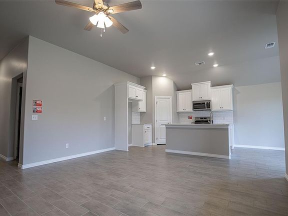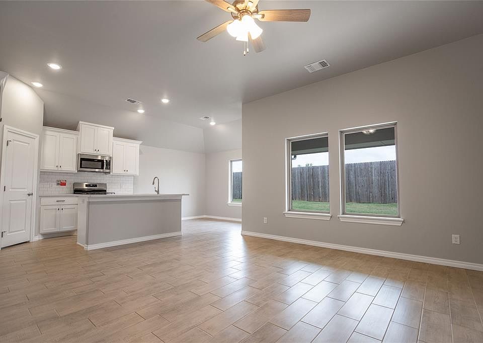 This Tero floor plan includes 1,680 Sq Ft of total living space, which includes 1,565 Sq Ft of indoor living space and 115 Sq Ft of outdoor living space. There's also a 385 Sq Ft, 2-car garage with a storm shelter installed. This affordable home offers 4 bedrooms, 2 full baths, covered patios, & a utility room. The great room welcomes large windows, wood-look tile, a ceiling fan, & Cat6 wiring. The charming kitchen has 3 CM quartz countertops, stainless-steel appliances, wood-look tile, well-crafted cabinets with decorative hardware, a center island, & stylish tile backsplash. The primary suite is straight ahead & supports carpet flooring, a ceiling fan, & the perfect sized windows. The attached primary bath suits a dual sink vanity with an elegant countertop selection, a walk-in shower, an elongated water saving toilet, & a HUGE walk-in closet! The outdoor living section is covered & has fully sodded yards with smart home irrigation control. Other amenities include a tankless water heater, a fresh air intake system, & MORE!