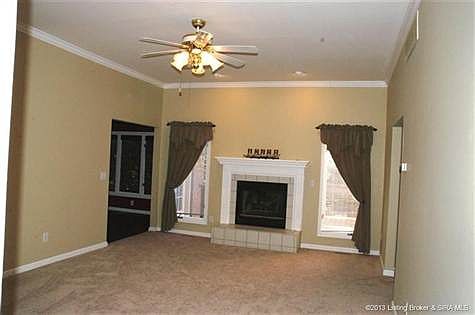 OUTSTANDING HOME WITH MANY UPDATES, NEW CARPET, NEW PAINT THROUGHOUT & REMODELED MASTER BATH INCLUDE CUSTOM FEATURES. 10' CEILING IN FOYER OPENS TO SPACIOUS LIVING ROOM WITH GAS FIREPLACE. EXTRA LARGE CLOSETS IN ALL BEDROOOMS. RECENTLY STAINED 20 X 13 DECK & 10 X 13 PATIO IN PRIVATE FENCED BACK YARD. KITCHEN HAS NEW TILED BACKSPLASH sink & faucets. All appliances stay. Custom MADE STORAGE CABINETS IN GARAGE STAY. Possession at closing. Sq ft & rm sz approx.\n\nInformation Deemed Reliable But Not Guaranteed. Information provided by the Southern Indiana REALTORS® Association, Inc. © 2010 SIRA Multiple Listing Service. All rights reserved. Brokered And Advertised By: Schuler Bauer Real Estate Services ERA Powered (NA) Listing Agent: Diann Brumley