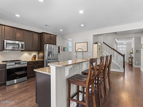 $5000 USE AS YOU CHOOSE TO BUYER, if under contract by JULY 17!* Welcome to this stunning family home located in the desirable Vineyard Plantation neighborhood in Porters Neck. Boasting great curb appeal and an open concept floor plan with fresh paint throughout, this residence offers 4 bedrooms, 3 bathrooms, and over 3200 square feet of living space. As you step inside, you'll find a formal dining room that sets the stage for gatherings. The kitchen features ample counter and cabinet space, a walk-in pantry, a large kitchen island with a raised bar and seating, and a bright and airy breakfast nook that opens to a spacious living room. Anchored by a cozy gas log fireplace, the living room is an ideal spot for relaxation. The first floor also includes a bedroom with an ensuite bathroom, offering convenience and privacy for guests or multigenerational living. Upstairs, you'll discover the remaining bedrooms and a conveniently located laundry room. The master suite is a true retreat, featuring a completely remodeled ensuite bathroom with a stunning built-in vanity space, a textured subway tiled walk-in shower with a rain shower head, and two expansive closets. Two additional bedrooms and a full bathroom are also located on the second floor, along with a versatile family room that has been converted into a media room complete with a projector and screen. Don't forget to explore the large fenced-in backyard, perfect for outdoor activities, gardening, or simply enjoying the outdoors in privacy. Come see this beautiful home for yourself today, before it's too late!