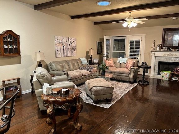 Gated community of Honey Creek, a great location near 81st and Sheridan. HOA dues take care of lawn care, sprinklers, perimeter fence, and streets inside the gate. Stucco exterior. 1,630 square feet, two bedrooms two baths, dining room, open concept kitchen/living. Eating space in the kitchen, granite countertops, induction range, and stainless steel appliances. Large two-car garage. Ceiling beams in the living room, hardwoods, bathrooms, and kitchen updated. Plantation shutters throughout. The garage has built-ins and finished floors by Garage Innovations. New Liftmaster door lift. Hot water tank new in 2022. New toilets, a new thermostat, and some larger rain downspouts were added. The roof and furnace were replaced in 2014. Covered patio is a three seasons room by Premier Patio, brick floor. Outside faucets have been replaced, outside wood trim painted, porch floor pain treated. Storm doors on all doors and small pet doors to the patio.