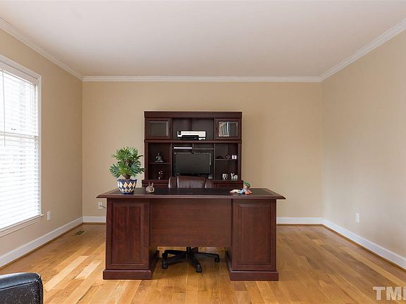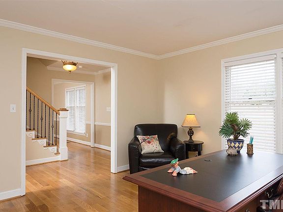 LOCATION, LOCATION, NW Raleigh! Over the bridge & through the wooded backyard, walk to Leesville schools! Opt Springdale swim/tennis! Culdesac 4BD/3.5BA brick home, 1.4 ac w/ walk-out basement, bonus, offc, flex rms & storage. Move-in ready. ~2013 kitchen renovation: braz slate flrs, refinished cabs, SS apps, lights & plumbing; Corian counters. Additional renovations: '09 1st flr hrdwds, '06 roof, neutral paints, ~'14 tankless h20 htr, gas grill hookup, lights th-out. Fenced yard & shed. NO CITY TAXES!