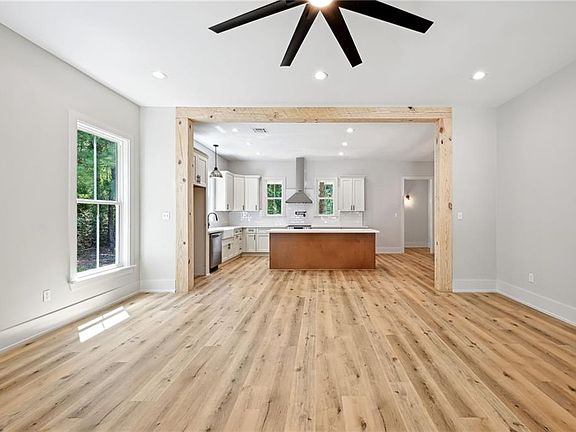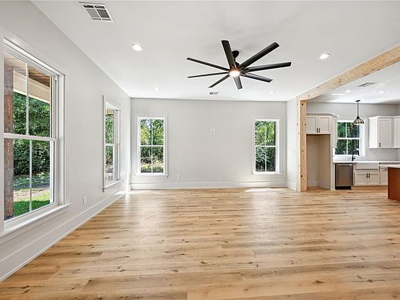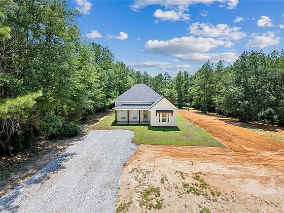 Enjoy modern country living in this stunning 4-bedroom, 3-bath home, beautifully situated on 2 spacious acres in Flood Zone X. The open floor plan features 10-foot ceilings, a striking cedar beam in the living room, and custom lighting throughout. The kitchen offers quartz countertops, a pot filler, and ample space for cooking and entertaining. The primary suite includes a luxurious bath with a walk-in custom shower and a stand-alone soaker tub, great for relaxation. With 8-foot solid doors and quality finishes throughout, this home combines modern comfort with rustic charm— peaceful country living.