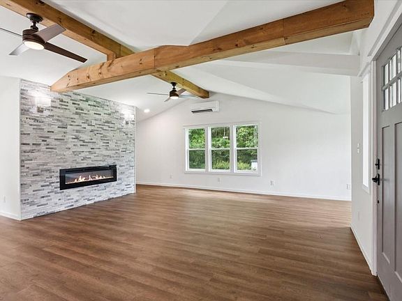 Fully Renovated 3 Bed, 2 Bath Ranch on 4 Serene Acres. Discover peace and privacy in this beautifully renovated ranch home nestled on 4 tranquil acres in a highly sought-after area. This move-in ready gem offers the perfect blend of modern comfort and timeless charm. Step into an open-concept living space featuring vaulted ceilings, exposed beams and a stunning stone fireplace that serves as the heart of the home. The kitchen boasts a large quartz island, pot filler, ample storage, walk-in pantry, and stylish finishes. The primary suite offers a spacious walk-in closet and a spa-inspired en-suite bath complete with a luxurious walk-in shower. Two additional bedrooms and a second full bath provide ample space for guests, or a home office. Outside, enjoy the beauty of nature with plenty of space to relax, garden, or explore, all in an incredibly private wooded setting.. Don’t miss your chance to own a slice of serenity in one of the areas most desirable locations.