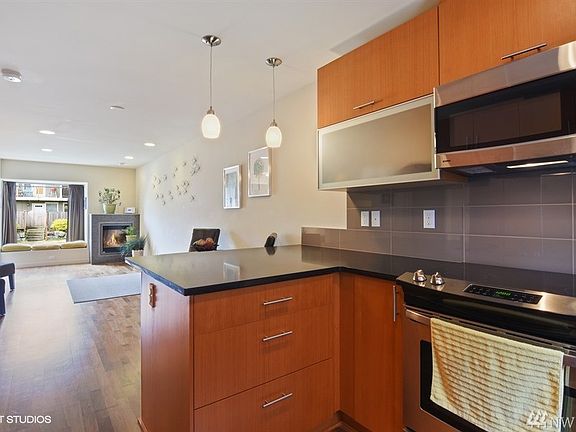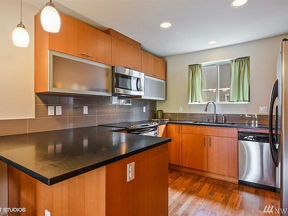 Pristine, well-cared for contemporary-styled townhome. Cathedral ceilings in upstairs bedrooms with expansive closets. Bright third bedroom on lower level. Bathrooms featuring Silestone counters and beautiful tilework. Living, dining and kitchen with walnut veneer floors on main plus electric fireplace and cantilevered window. Slab granite kitchen counters, sleek euro-style vertical grain fir cabinets. Just blocks to Greenlake and Phinney shops and restaurants. Easy commute to downtown.