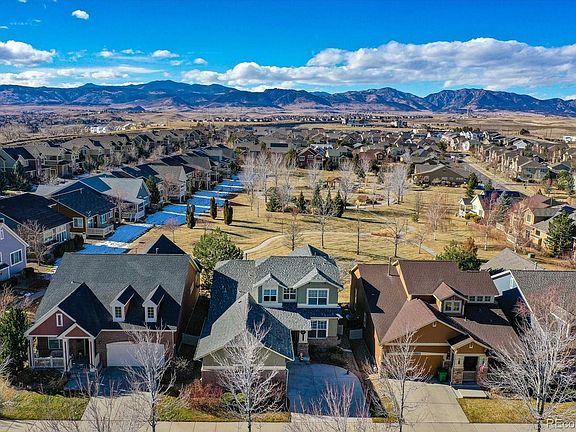 Here is the property you have been waiting for and dreaming of! This pristine home sits at the edge of beautiful Haskin Park with full Front Range mountain views! Location is supreme, walkable distance to the hub of the neighborhood - Community Pool, Coffee Shop, Pub, Shops, Dining & 5 Parks/Trails. This is a single-family patio home with a Main Floor Master Suite! If you are looking for an easy lifestyle or a lock-n-leave property, THIS is it! You'll enjoy the recent updates of the beautiful hardwood floors throughout the main floor and the marble-like bathroom and laundry room floors. The mountain views that greet you at the front door and most rooms in the house will get your attention. A wide-open floorplan with soaring ceiling heights is dramatic as well as comfortable. There is a home office which could be a 4th bedroom and a full bath nearby. The large kitchen is a cook's delight with an extensive amount of cabinets and slab quartzite countertops. 2 dining spaces will service all of your dining/entertaining needs. The main-floor bedroom suite is a spacious retreat with beautiful views of the park & mountains, a luxe 5-piece bath and 2 closets. Upstairs has 2 large bedrooms and a full bathroom. This is a suitable layout for guests, grandkids, and children to have their own private space. The unfinished basement provides space for storage or finish as desired. A covered deck facing the park and mountains will provide pleasant mornings and lovely sunsets. The 2 Car Garage is oversized and ample space for toys or workspace. The entire exterior structure is maintained by the HOA, snow is shoveled, trash & recycling removal is provided, plants and lawn are tended to, and all water is covered! The Village of Five Parks is conveniently located 25 min to Boulder, 30 min to Denver, 40 min to Denver International Airport and 15 min to the I-70 corridor to the mountains. This Home offers you Colorado Living at its finest!