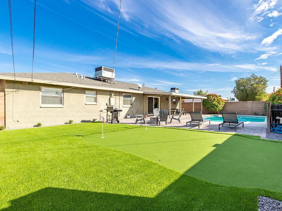 This newly remodeled furnished home offers 5 spacious bedrooms and 3 full baths, along w/ an open main living area & gorgeous custom kitchen that boasts ample counter space and SS appliances. Lounge by the sparkling pool, practice your swing on the newly installed putting green or dine al fresco under the large covered patio. Located in South Scottsdale and close to Loop 101 and 202 freeways. Close to dining, shopping, golf & more! **Available May 1st. Minimum lease term 2 months. Open to 12 month lease, inquire for pricing. Furniture negotiable for long-term lease.** Property is intermittently occupied - contact agent for showing availability Monthly rent includes weekly pool service & bi-weekly landscaping service. All other utilities are tenants responsibility. Tenants responsible for 1.75% rental tax. Tenants to provide their own linens, pillows & towels - all other furnishings to remain in place unless otherwise agreed upon. Furnishings can be negotiable depending on lease length. Dogs OK upon lessor approval. No cats. No corporate leases/subleasing