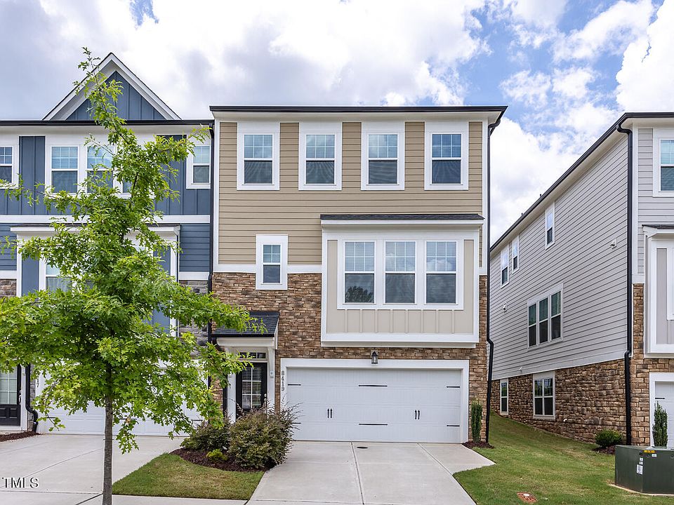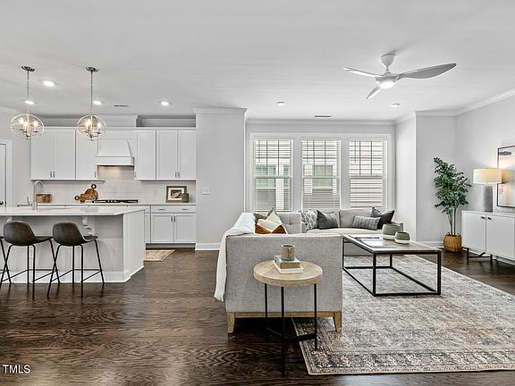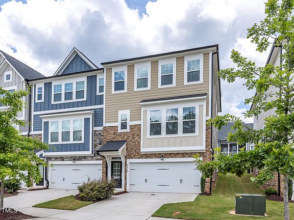 Welcome to bright, new, luxury living in a highly sought-after North Raleigh location! This stunning end-unit Wykoff townhome, built in 2021, epitomizes modern comfort and convenience. Open living areas greet you with nine-foot ceilings throughout and unbeatable natural light, creating an inviting atmosphere year round. The flexible floor plan features highlights including dual primary suites upstairs, each boasting spacious walk-in closets, dual vanities, private water closets, and glass door tiled showers with benches. The modern kitchen is a chef's dream, featuring quartz countertops, stainless steel appliances, bright white cabinetry, a subway tile backsplash, and a large island perfect for gatherings. Entertain effortlessly in the dining area complete with a built-in bench. Convenient main floor bedroom is the perfect work-from-home office space while the lower level bedroom with an ensuite full bath offers flexibility for guests, in-laws, bonus room or exercise space. Outside, relax on the peaceful screened-in porch with a ceiling fan, or take a stroll around the neighborhood. Commute by foot, bike, or car to Target, Whole Foods, local shops, coffee spots, dinner or neighborhood elementary school. Enjoy maintenance-free living with the HOA covering exterior maintenance and all major systems only 3 years old. Special Financing incentives available, please inquire with listing agent.
