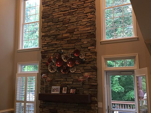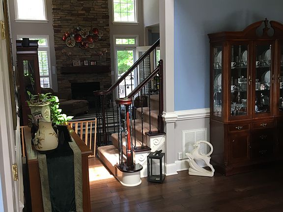 The upgraded kitchen is now is equipped with granite countertops, Jenn Air Gas cooktop, Kitchenaid wall convection oven/microwave, and Samsung fridge. Great room has stone fireplace & 18' ceilings, wrought iron railings. Brand new, upgraded carpet throughout the house and freshly painted rooms. New hickory hand scraped hardwood floors. Beautiful wooded, large fenced-in back yard with in ground salt water pool,landscape lighting front and back yards. Irrigation system on a well. Alarm system. New HVAC systems both floors. Theater room with surround sound and 130” screen.