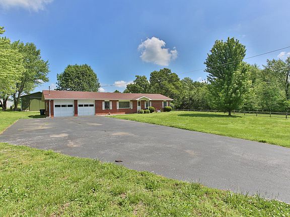 ONE OWNER HOME! Great all brick, with walk out basement on 10 acre lot! This home has 3 bedrooms, 2 bath, 2 nice big living areas with dining area. Kitchen has a lot of cabinets, all original to the home. All appliances stay! Conveniently across the hall from the bathroom is a laundry shoot down to the basement, large open, partial finished, basement includes a utility room with sink. Attic fan to keep you cool in the hot season. There are 2 barns on the acreage, 40x60 workshop with 220 wiring and the other one has regular electric. Enjoy sitting on the covered front porch or back patio overlooking your 10 acres! Call to see this home today!