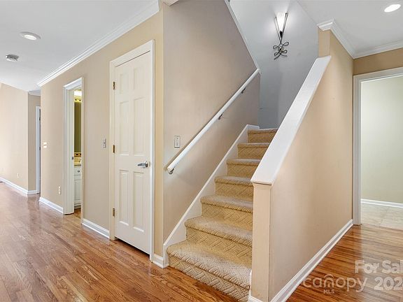 Prime downtown Hickory location for this two-level condominium at Combford Park featuring main-level living with ease of access & very few steps! A welcoming front courtyard with iron gate leads you to the front entrance. Inside, a vaulted ceiling great room offers a gas fireplace & formal dining area. The updated kitchen offers custom glazed cabinetry, granite countertops, stainless appliances, bar seating & cozy breakfast area. Enormous primary suite offers sitting area, exit to rear deck, private bath with marble-topped dual vanities, tiled Roman shower & custom walk-in closet. You'll also find a wet bar, half bath, laundry room & single garage on main level. Upstairs, a loft area overlooks the great room & opens onto 2 bedrooms, hall bath & cedar-lined storage closet. Second single garage located at the back of the complex. HOA Dues are $311/mo. and cover water, sewer, trash, outside lighting, common area insurance & lawn maintenance.