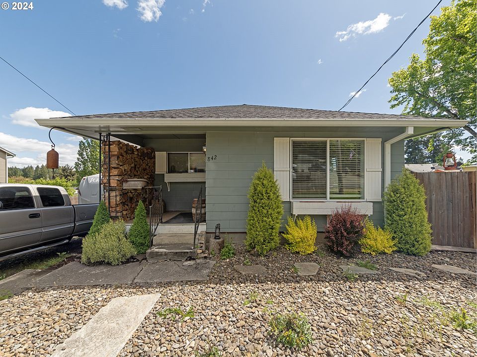 This well-maintained five-bedroom home sits on an oversized double lot, featuring a fenced yard with mature trees perfect for a tire swing and shade, landscaping and garden area. Enter the home at main floor that includes the primary bedroom, 2nd bedroom and a bathroom, a living room with updated vinyl windows and fresh interior paint, a kitchen with newer granite countertops, and a dining room with a ceiling fan and cozy wood fireplace. Laminate hardwood floors in living room, kitchen & dining room. The finished basement downstairs offers a door to outside, a carpeted family room, three bedrooms and a full bathroom as well as a large laundry closet with washer and dryer included. 5th bedroom has vinyl floors and exterior entrance for versatile uses. Graveled driveway with ample parking and room for garage or shop. Tiered decking in back leading down to spacious back yard with separate fenced area and new custom chicken coup. Close to downtown Vernonia and all the basics of a small town as well as various restaurants, linear trails, rivers and Vernonia Lake. Come enjoy small town living today!