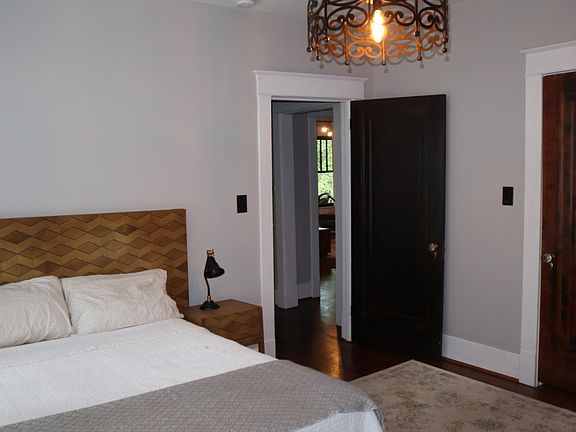 Come see this for yourself. Absolutely gorgeous 1930s Craftsman home has been beautifully restored and updated for a modern sensibility. This home features a painted brick fireplace, built-in shelving, newly refinished hardwood floors, tongue and groove ceilings, and a newly updated kitchen with tons of storage and usability. Laundry is located at the end of the kitchen behind massive double barn doors. The master suite features a den area for private relaxing or tv watching and a large bathroom with a glass walk-in shower, double vanity, and large clawfoot tub. The walk-in wardrobe has custom shelving and storage throughout to maximize efficiency and style. The fenced garden has blueberry bushes and five raised beds for raising herbs or vegetables. There is a separate detached 2-car garage/workshop with a storage loft available for an additional $500 per month. Gigabit fiber optic internet is included with rent as well as an advanced home security system. One year lease Rent: $3,000 Application Fee: $45 Security Deposit: $3,000 Available 9/1/22