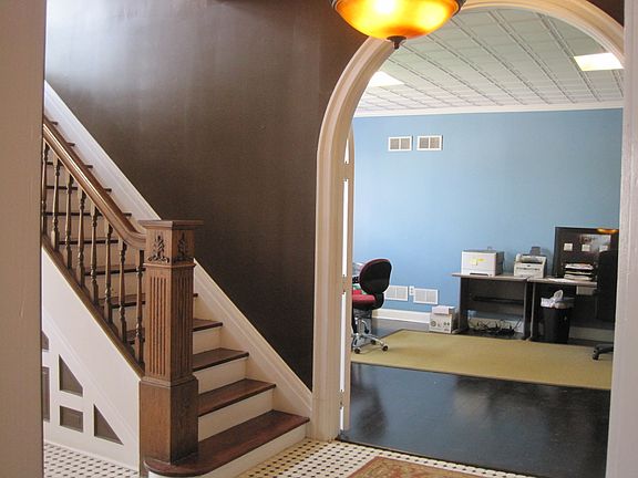 Well maintained office and/or retail space. Numerous renovations and new hardwood floors throughout. First level features 3 spacious offices/room, kitchenette and powder room. One is greeted by a beautiful arch doorway, French doors, 9' ceilings and an abundance of natural light. Second floor features 3 additional offices/rooms and 1.5 bathrooms. High speed network and data ready. Office furniture negotiable. Ideal opportunity for a start up company or small business. Third floor is unfinished with additional potential.