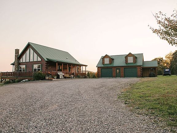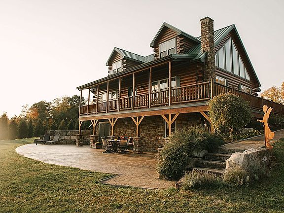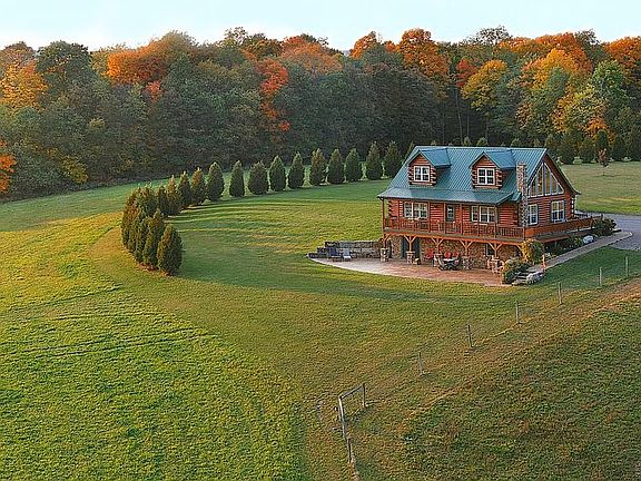 Rustic, Log Home on almost 20 beautiful country acres! If you have horses or want to raise livestock look no further. Fenced in pasture with spring fed pond and run-in barn sits right out the door to watch your animals. Home features wrap around decking with covered front & back porch, Pine interior walls & flooring, Hickory cabinets, cathedral ceiling with loft, master bedroom suite on main floor with garden tub and amazing views! The finished basement offers a great place for a family room with a full bathroom and could be used for space if another bedroom is needed. Make it an office area as well. Walk out the basement to the gorgeous poured concrete patio, perfect for entertaining and family gatherings. The detached 2 car garage has an upper floor that can be finished for more space! Both buildings have a metal roof. There is an additional fenced in area for a dog enclosure or chicken coop! Plenty of space if you want to garden as well. You simply must see this home!