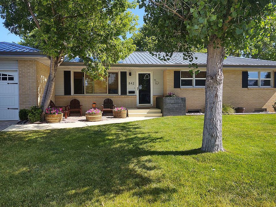 New windows, new soffits, and seamless gutters. Newer steel roof. Newly refinished hardwood floors throughout. 'Open-concept' kitchen remodel with new cabinets, polished granite countertops, and Frigidaire appliances in 2018. 3 bedrooms and 2 full baths upstairs. Finished carpeted basement with 2 bedrooms downstairs and 1 full bath, plus large entertainment area with recessed ceiling lighting, built-in mini-fridge & dry bar with solid wood block countertops. Privacy-fenced outdoor back patio and large back yard with perimeter wood fencing. Separate garden space with white picket fencing apart from main backyard area.