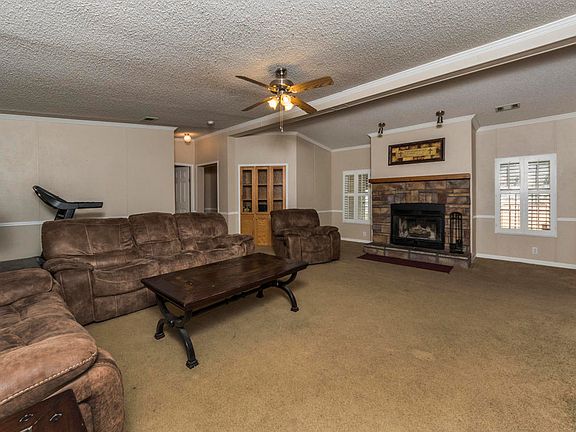 Looking for a home on acreage? Look no further. This is a mobile home like no other! Wonderful open kitchen with an oversized island and cabinets galore. The living room boasts a heartwarming fireplace flanked with brick. A master suite fit for a queen with a garden tub and separate shower. Four large bedrooms with all neutral colors. New A/C has been installed and is still under manufactures warranty. The roof is only 6 months old. Relax on the oversized back porch, or tinker around in the 40X40 shop with 2 roll up doors. All on 5 country acres of land with plenty of room for horses. This property is truly a treat! Take a look today!
