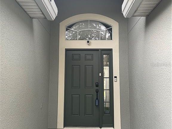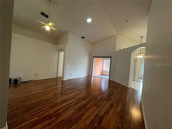 COUNTRY CROSSINGS AT SPRING RIDGE - 4 bedroom, 2 bathroom, single-story, corner lot - directly across from the community playground and pool! This move-in ready property features laminate and vinyl flooring throughout (no carpet!), brand new Renewal by Anderson windows (2020), new garage door opener (2020), newer roof (2017), HVAC (2012) with UV Light system, Sun Tunnel Sky light in Living/Dining Great Room, Solar Water Heater (2013) with new pump and plumbing (2020), new bathroom faucets, new hardwired smoke alarms (2020), Nest Thermostat, and installed ADT security system with cameras, Ring cameras, and Ring doorbell. This extra large corner lot property is fully fenced in back and includes a Lifetime Shed, irrigation system, plenty of space to garden or play. Freshly painted exterior in 2020! This home is zoned for amazing Apopka schools: Wolf Lake Elementary, Wolf Lake Middle, and Apopka High! (Property may be under audio/video surveillance.)