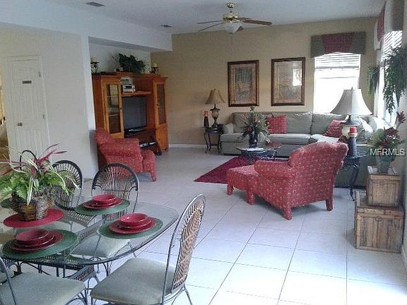 A truly amazing 5 Bedroom 4 Bathroom home located in Legacy Park. Home comes fully furnished and is superb overall condition. The inviting Living Room includes a Flat Screen TV, this leads to a spacious kitchen with breakfast bar, perfect for entertaining your guests and there is also a separate eat in area with view of your own private pool. Exquisite formal dining room that will seat 6 guests comfortably. Lovely Master Bedroom with ensuite bathroom with dual sinks, garden tub and separate shower. All bedrooms have carpet flooring and are tastefully decorated with great sized guest bathrooms with shower tub combination. The large garage that is currently used as a Game Room includes a pool table and air hockey table. Let's not forget your backyard with private screened pool. Legacy Park is a desirable and tranquil community in the ideal location minutes away to dining, shopping and some of Orlando's most popular theme parks.