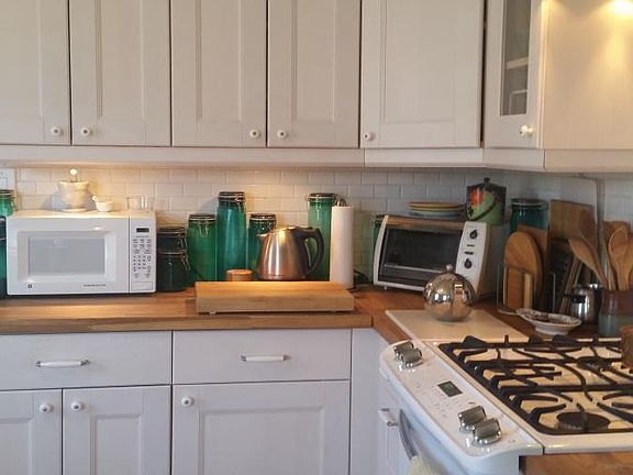 Sustainable Urban Living at its Finest! We're using cutting edge technology to lower your carbon footprint and your energy bills. We have made the building carbon neutral: spray-foam insulation keeps the heat in and a European pellet boiler completely eliminates fossil fuel consumption. All electricity purchased for the property is from renewable sources. This apartment is centrally located in the heart of Ithaca: Across the street from Fall Creek elementary School, close to Ithaca High School and Boynton Middle School, ten-minute walk from downtown Ithaca, five-minute drive to Cornell University campus, and a ten-minute drive to Ithaca College Campus. Walking distance from Ithaca's greatest natural treasures; Ithaca falls, Cascadilla gorge, and Cayuga lake all but a short walk away. -This is a recently renovated, Victorian townhouse with refinished oak floors, high ceilings, and tall windows in every room, making for an open, spacious feel to the entire apartment. -A recently remodeled kitchen offers cheery white cabinetry, teak counters, and stylish subway tile work. The mid century, porceline topped, retro sink unit is set charmingly in its own alcove, and the large window above, ensures that every corner of this welcoming kitchen is filled with light. -The retro character continues in the bath, with its claw foot tub/shower, painted wood floor, and glass shelving. An ample window fills the room with light. -This is a 3 bedroom apartment; the spaces are flexible due to the accommodating layout. All three spaces have windows and closets, so you cant set it up according to your family's needs. -The living room is spacious, with an open door frame connecting the kitchen, perfect for entertaining seamlessly through spaces. -The front porch is roomy enough for sitting with friends and enjoying long summer evenings in Ithaca. Utilities included. $25/month fee per animal for well behaved pets.