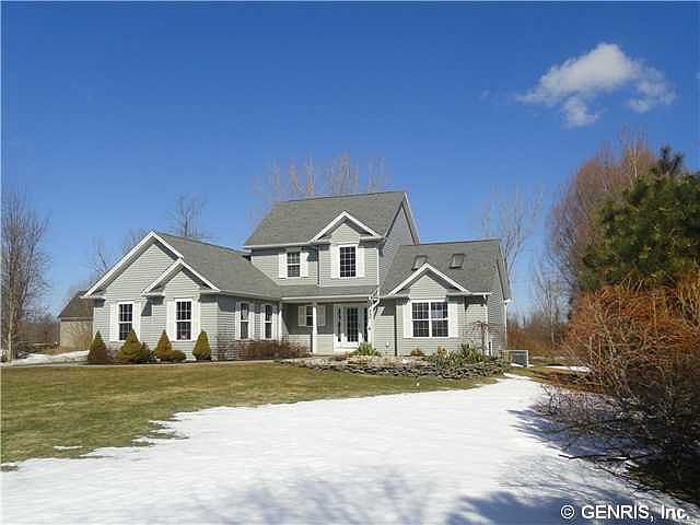 Impeccable 2003 built contemporary with 1st floor master suite, cathedral ceilings with sky lites, Great room with gas fireplace. wide open country kitchen with 10' bay leading to a 21 x 27 foot trex deck. Two story foyer with decorator marble floor. Finished basement has powder room and bar. High eff furnace and hot water tank 2015. 500 foot lot has storage shed with overhead door and a block fire pit. Professional landscaping with stone boarder. Home has an awesome 118' setback. Just 1 mile west of Rt 259.
