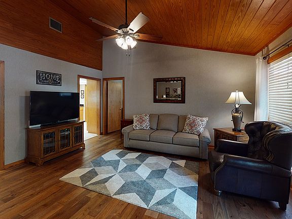 This property feels like a retreat from the minute you pull into the driveway with its pond view, mature oak trees, and pretty landscaping. Both the exterior and interior have been so lovingly cared for that this home is like brand new. When you enter the home take notice of the vaulted wood ceiling, Villa Bocelli hardwood floors, and the open and airy floor plan with neutral paint colors. The kitchen has beautiful black granite countertops, and most of the appliances are less than two years old. Just off the kitchen is a nice laundry room and pantry. From the spacious master you can walk out onto the back deck and enjoy the beautiful scenery. The two additional bedrooms have walk-in closets and share a Jack and Jill style bathroom with granite countertops. Outside there is a large deck with plenty of bench seating for entertaining and a charming walkway that leads to a roomy, two-car garage that could also be used for a workshop.