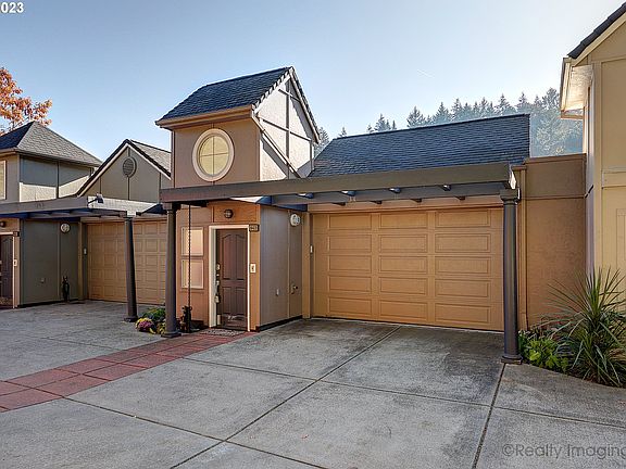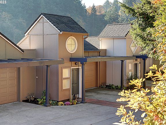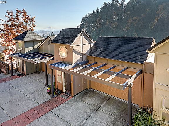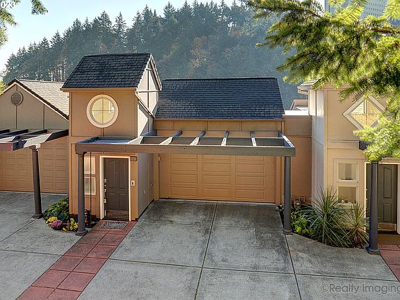 Stylish, boutique townhome nestled in the trees with stunning views of Mt Hood & the Willamette River. Finished hardwood flooring throughout. Dramatic floor to ceiling windows offer harmonious volumes of natural light. Exquisite chef's kitchen remodel with stamped concrete countertops, island, 6 burner Wolf stove & stainless steel appliances. Generous primary suite with upgraded luxury bath. Loft upstairs with built-ins is perfect for an in-home office. Central AC. Entertainer's deck. 2 car garage. Additional storage space. Shingled roof was just re-roofed. Flat roof done in 2016. Top rated schools. Minutes to downtown Portland, shopping, eateries, pubs & Duniway Park!