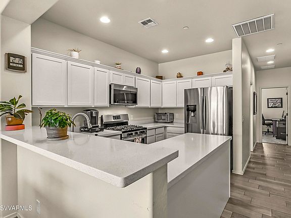 This charming townhome is designed for low-maintenance living, featuring an open split floor plan with tile flooring and a sunlit family room. The kitchen has quartz countertops and fresh appliances. Step outside to one of the biggest backyards in the subdivision with views of open skies and serene mountain vistas. The 37-foot tandem garage can accommodate a car plus extra storage for a motorcycle, workbench and other hobbies. Mountain Gate offers an exclusive community park that has basketball, pickleball, picnic ramadas and more, while being in close proximity to nearby wineries, and the many restaurants of downtown Cottonwood and Jerome.