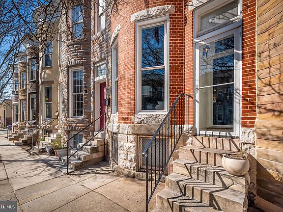 Classic Hampden bow front home in perfect central location.  Super charming house oozing character, with modern amenities. Bamboo flooring throughout the main level, exposed brick and exposed beams. Upgraded kitchen with soapstone countertops, stainless steel appliances, new stove and wine fridge. Coveted main level powder room, room for a dining room table. Upstairs with three bedrooms, large south facing primary bedroom with great windows. Nicely sized hall bathroom with new tub and surround. Convienient upper level laundry area with side by side machines and shelving above. Fenced in backyard, with brick pavers, a parking pad could be possible.  New drainage system and concrete slab in the basement ( was previously a dirt basement), sump pump. Furnace was replaced in 2023. Ideally situated between Elm and Chestnut just a few blocks south of the Avenue.