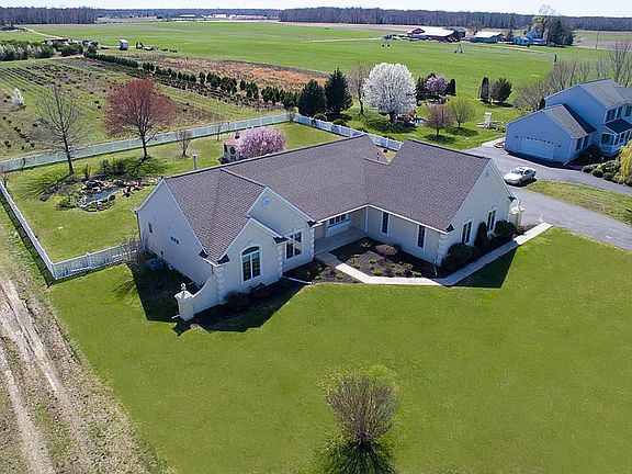 Country living at its best, in this custom built rancher. Expect lower energy bills with 2x6 framing and upgraded insulation. Sunlight galore, solar ready, southern exposure three bedroom, two bath home on an acre of land which backs to PROTECTED/PRESERVED farmland. The OPEN floor plan will impress you. GREAT ROOM with vaulted ceilings, hardwood floors, and gas fireplace. Eat-in kitchen features ceramic tile floors, upgraded cabinets, double sink and breakfast nook with beautiful exterior garden views. Dining room with hardwood flooring. Great master suite includes a huge walk-in closet and master bath with tile flooring and whirlpool tub. Both full size bathrooms include up-graded fixtures. Additional spacious second and third bedrooms feature floor to ceiling windows. Ceiling fans in all rooms. Plenty of storage. Six panel/double doors throughout. Anderson casement high performance sun windows and 5" window sills with custom window treatments. Hardwood flooring throughout. Upgraded light fixtures in every room. Full basement with walkout bilko doors. The triple French doors in the great room lead to the EP Henry paver raised deck, slate patio and slate walkway. The exterior park-like setting is amazing. A garden paradise awaits you, including a fish pond and lovely gazebo. White vinyl fenced in back yard. Front and back beautifully landscaped with irrigation system. Two and a half car garage. Mint condition, spotless and ready for your personal tour. Gorgeous home! Easy access to 55, AC, area bridges and all shore points. Make your appointment today. ALSO INCLUDED: ONE YEAR HOME WARRANTY.