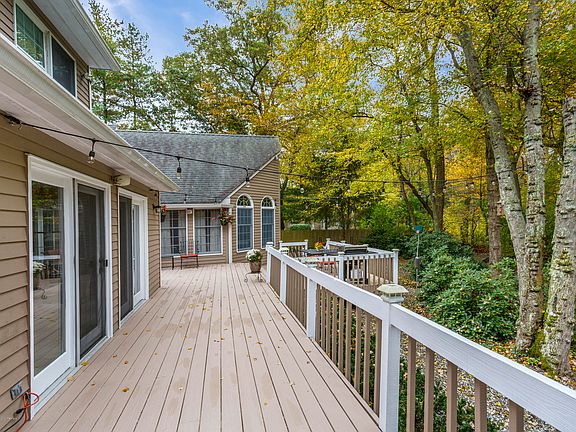 Custom built Rathjen home with great floor plan including master suite on the first floor. Many special features with great flow for entertaining and comfortable living. 62' deck is accessed from living room, family room and master suite overlooking beautiful wooded lot. Extra storage in garage including overhead storage. Large kitchen with newer granite and stainless appliances. Home located in a private setting adjacent to wooded area of Manasquan River Golf Course. Includes Wave Ventilation System.