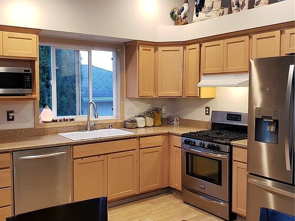 Lovely Two Story Home w/covered porch in Eagle Heights. 3 bedrooms 2.5 baths. Vaulted ceiling. Beautiful Wood laminate floors. Generous sized Master w/walk-in closet and its own bath. Bright open Kitchen features Birch Cabinetry, Granite counter tops, SS Gas range and a Bay window dining area. That opens to the family room w/gas fireplace. Private fully fenced backyard w/large patio and raised garden beds. Separate laundry rm. Three car garage. New Roof TB included. Neighborhood Playground/Park.